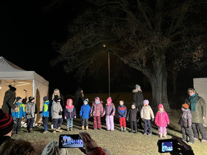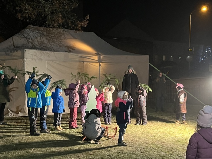 A v neděli večer nás čekalo ještě jedno setkání – rozsvícení vánočního stromu na Kovákově. Panovala zde velmi přátelská a sousedská atmosféra. Lidé přinesli domácí dobroty, jednohubky, koblížky a nechyběla ani zabijačková polévka. Vánoční melodie a společné setkání dodaly celému večeru pravé kouzlo adventu.